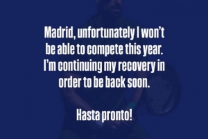 右肩伤势影响!德约科维奇宣布退出ATP1000马德里大师赛