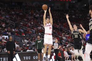 体育资讯04月02日讯 NBA常规赛,火箭在主场以119-113战胜雄鹿,赛季主客场双杀对手。