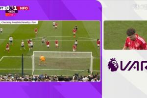 体育资讯03月22日讯 英超第31轮,热刺vs诺丁汉森林。上半场结束前,罗梅罗在对手禁区倒地,VAR介入,最后确认没有点球。