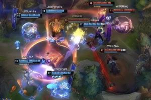 体育资讯4月19日讯 在昨日的LPL第二赛段JDG对阵WBG的第三局比赛上,Hang操刀巴德关键团大招完美错开所有人遭热议,图中Elk是自己开的金身。